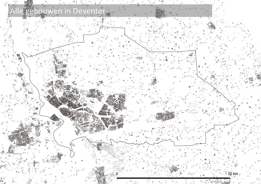 Alle gebouwen van Nederland plotten op een kaart. Leuk om de grote verschillen te zien, van bijvoorbeeld Delfzijl dat wel aan het eind van wereld moet liggen, tot het pittoreske Deventer waar je de IJssel bijna doorheen
