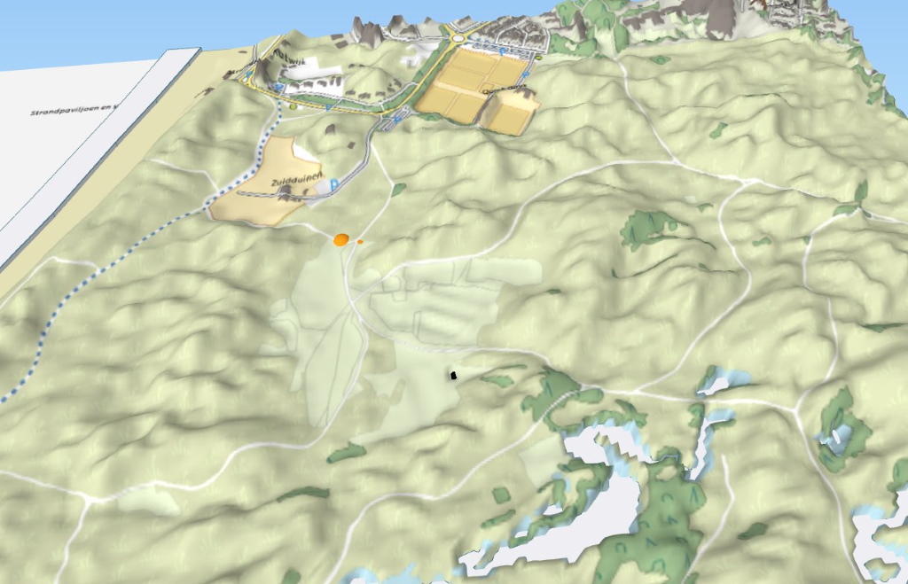 En hier nog een 3D-hoogtemodel met actuele topografische ondergrond van de duinen bij Katwijk. De live-versie