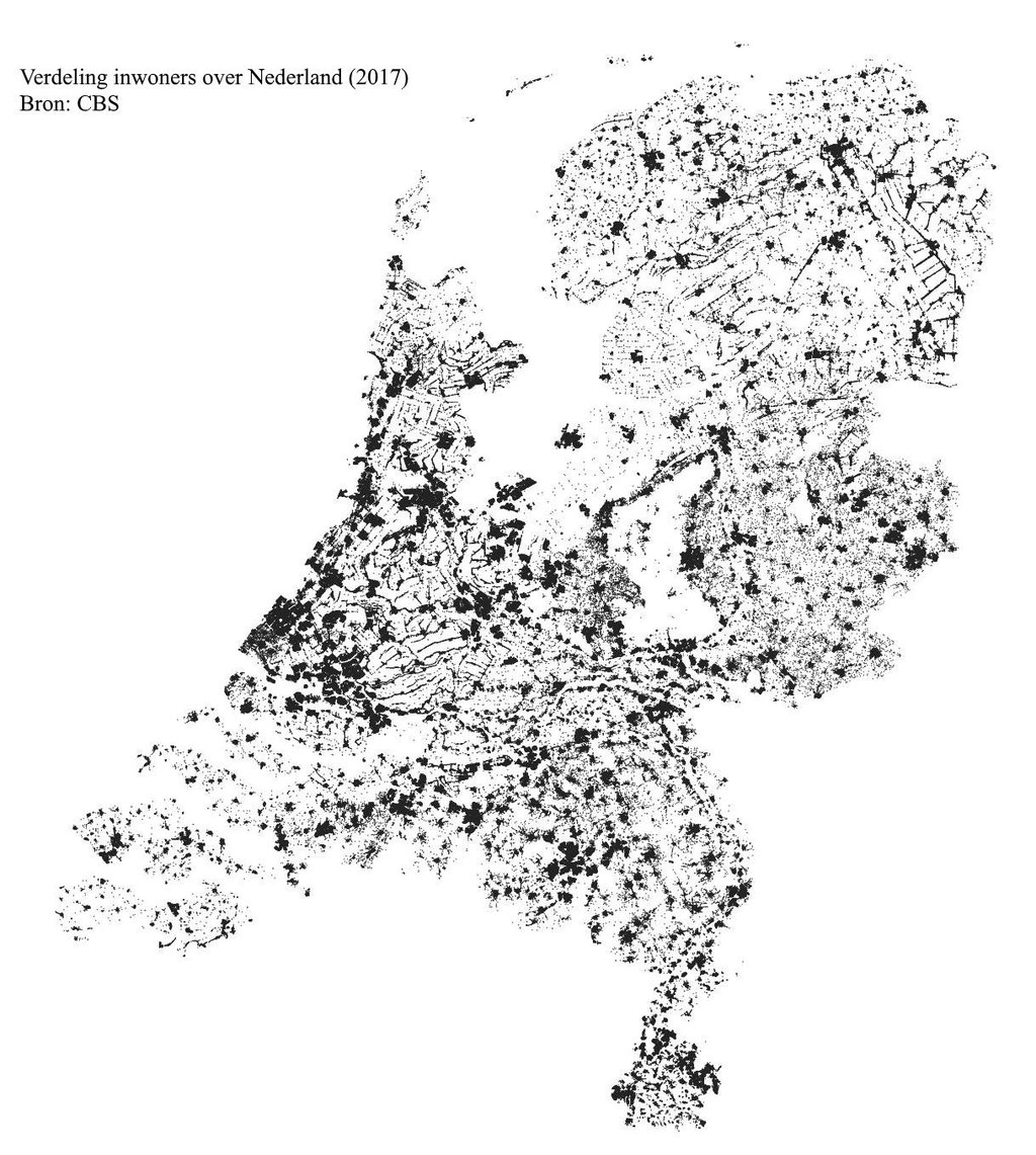 Wanneer je alle inwoners van een land op het scherm plot is meteen duidelijk om welk land het gaat…