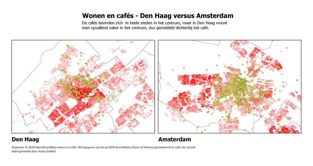 En wanneer je inwoners en cafés in 1 kaart laat zien krijg je ook een inzichtelijk plaatje.