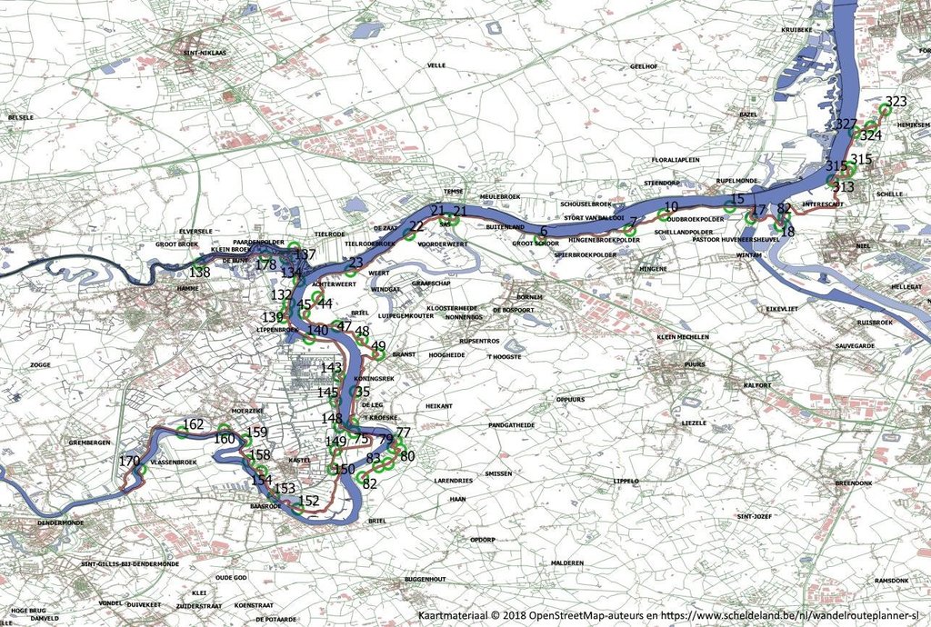 Een op maat gemaakte wandelkaart van de Zeeschelde boven Dendermonde voor eigen gebruik.