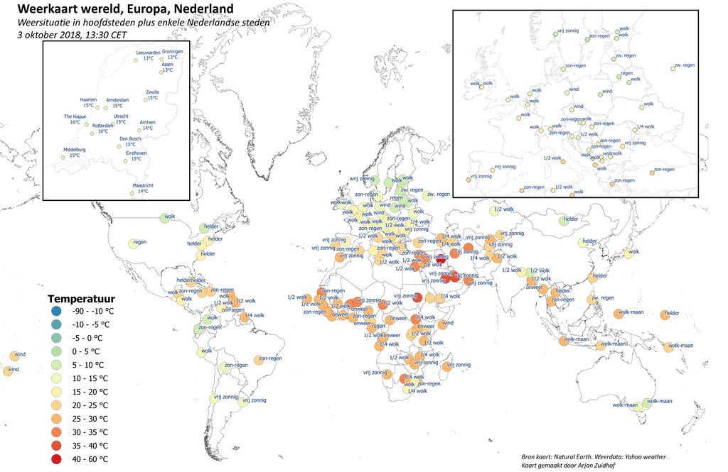 Weerkaarten oefenen sinds het keuzevak “practicum weerkamerpraktijk” tijdens mijn studie altijd een grote aantrekkingskracht op mij uit. Dit is een aanzet voor een kaart die op verschillende niveau het huidige weer kan tonen. Met een kleine aanpassing valt een ‘atlas’ te genereren voor meerdere gebieden.